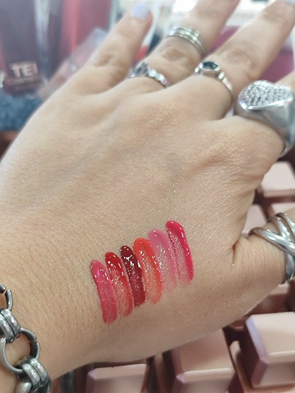 Gloss con color, 6 tonos disponibles.
