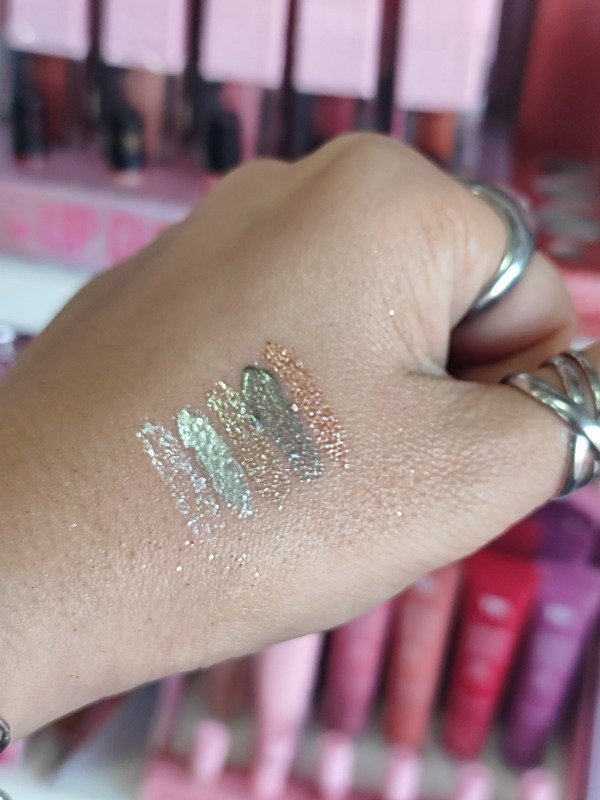 Usalo como iluminador o sombra líquida. Alta pigmentación, 5 tonos disponibles.